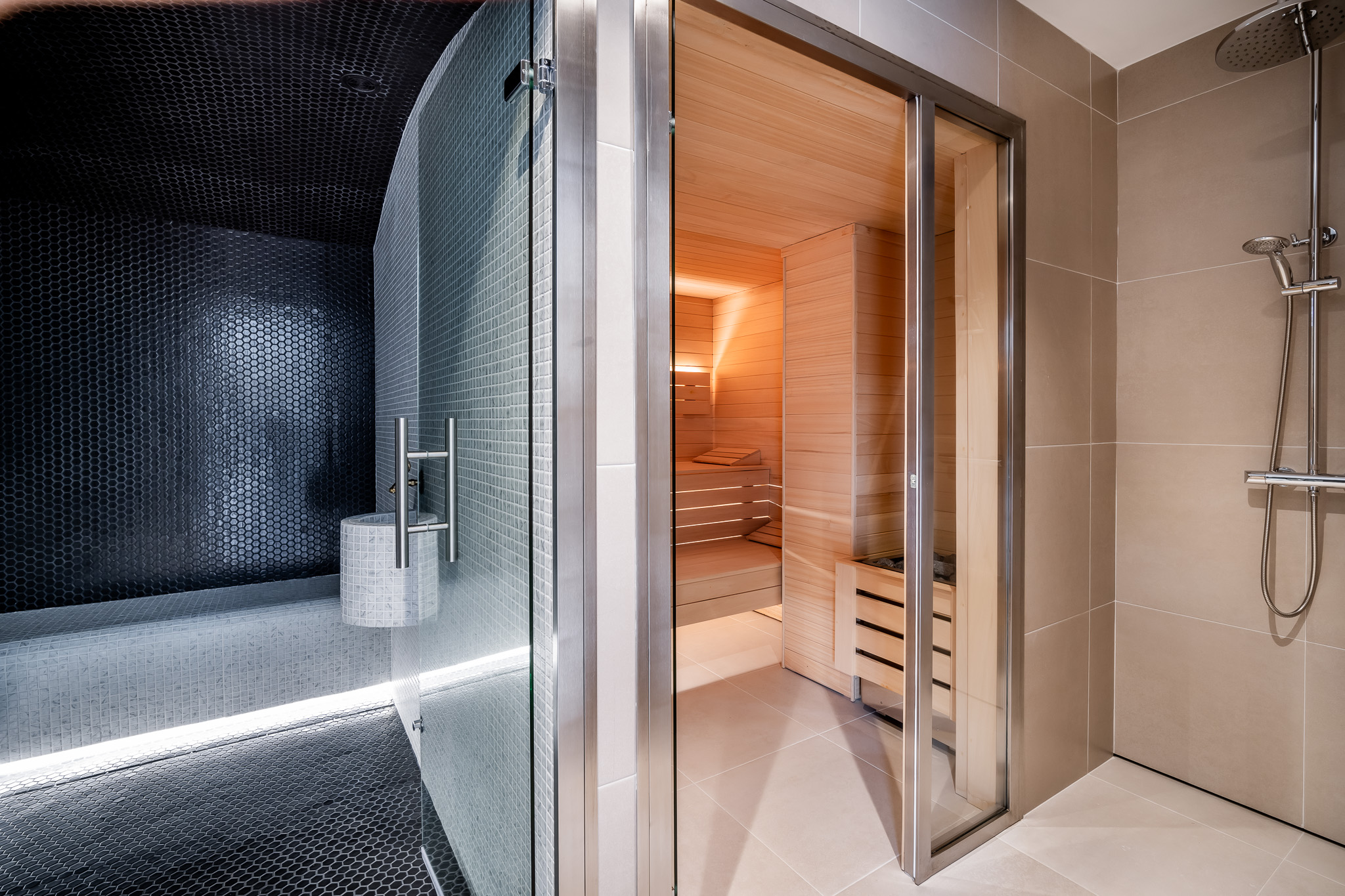 La villa cuenta además con apartamento independiente para el personal, spa privado, y un garaje amplio con entrada por una elegante vía privada.