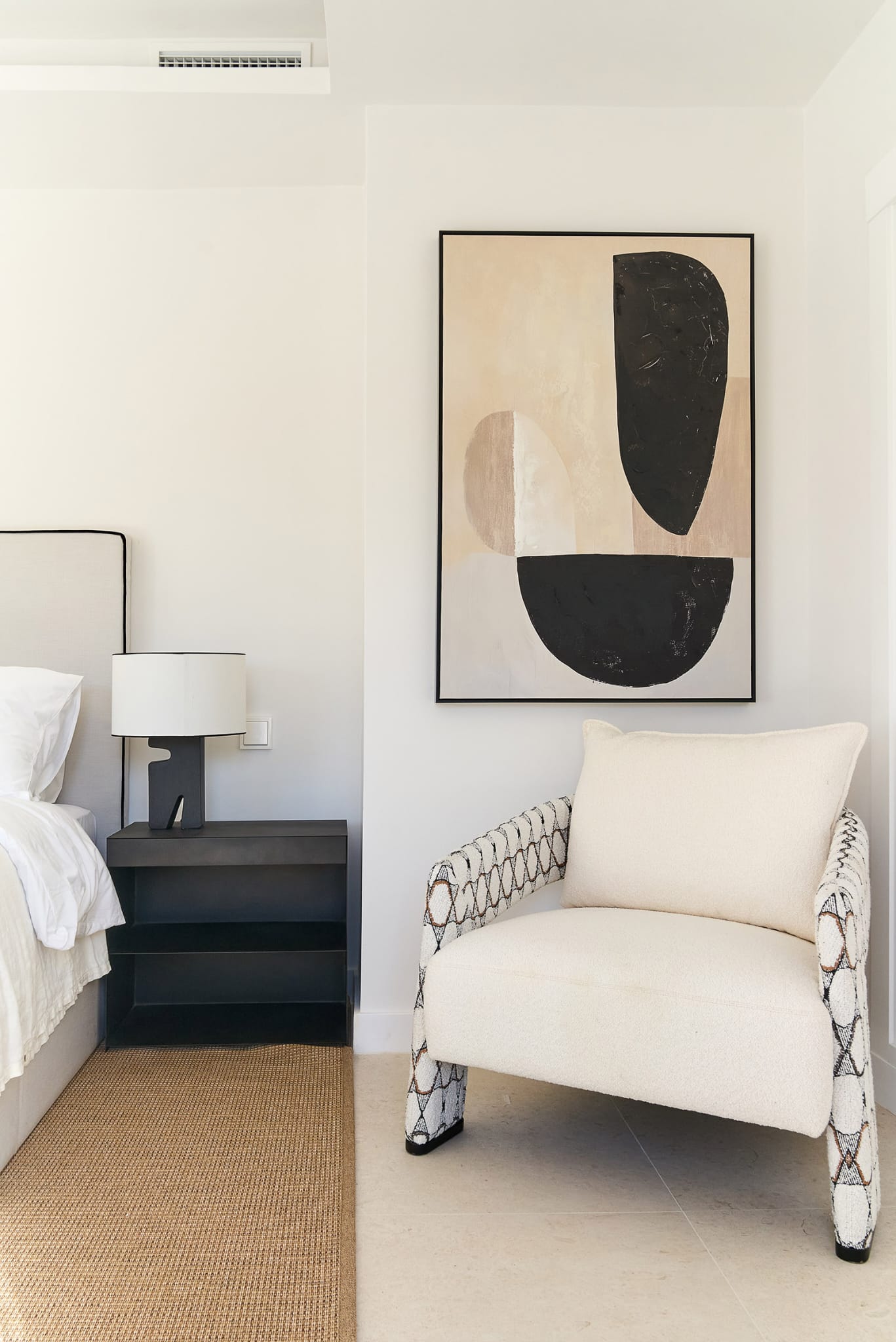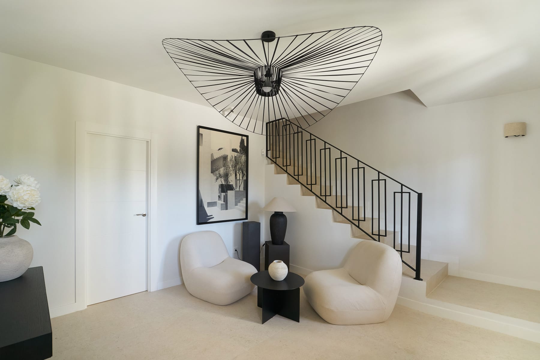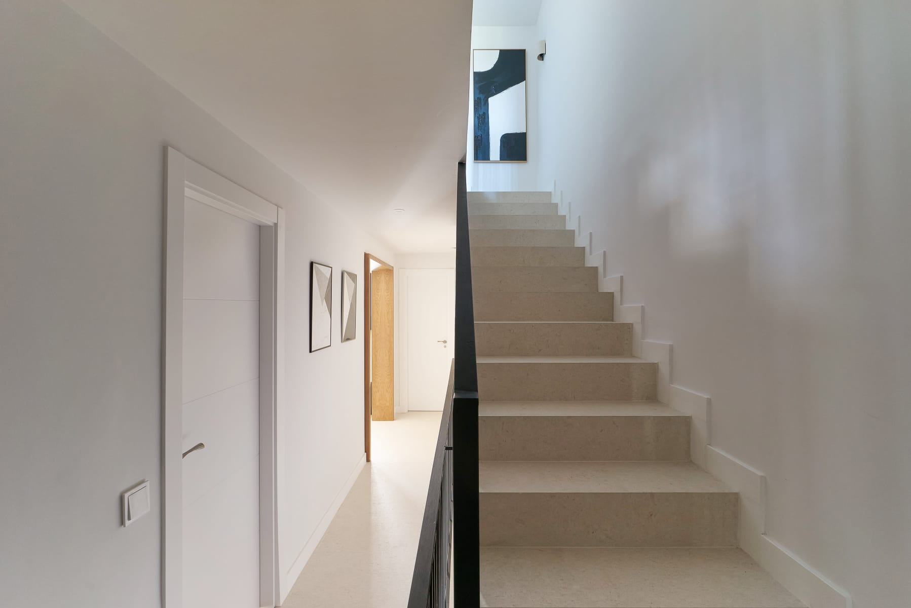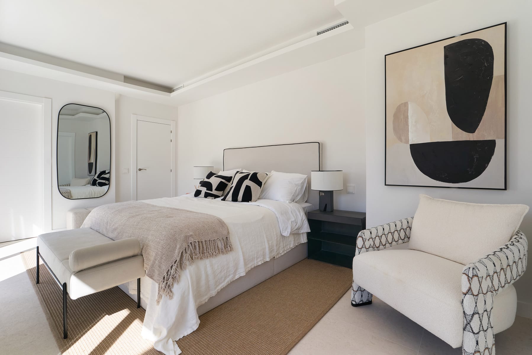 En la planta superior, la suite principal ocupa todo el nivel, ofreciendo privacidad absoluta, una gran terraza privada y unas vistas impresionantes que convierten cada amanecer en un lujo.