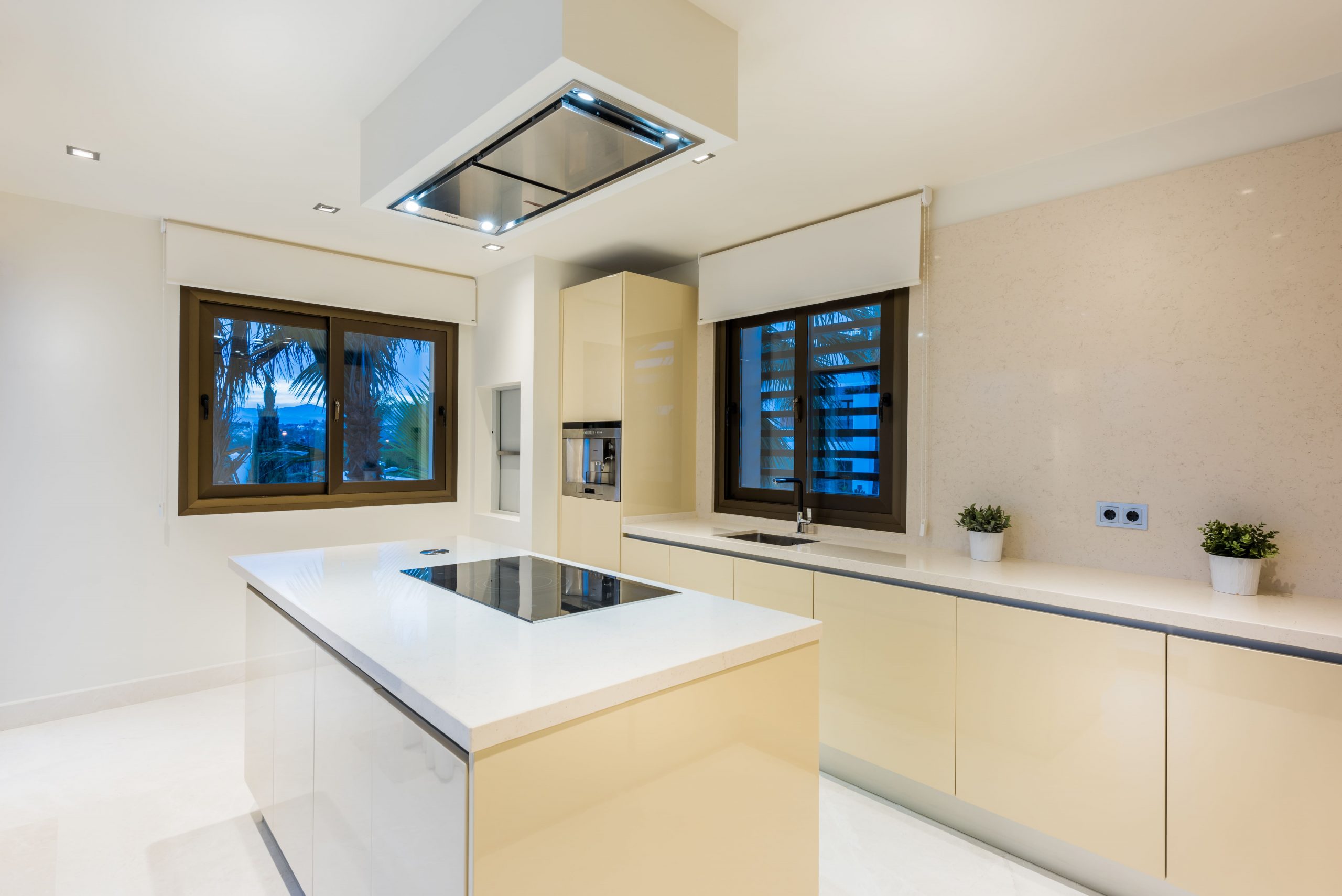 El interior de la vivienda está pensado para ofrecer la máxima funcionalidad sin renunciar al diseño y a la elegancia. La zona de día integra un amplio salón, un comedor de estilo contemporáneo y una cocina principal completamente equipada, acompañada de un lavadero y cuarto de servicio. Además, la villa cuenta con una segunda cocina de apoyo, ideal para eventos o servicio privado, que se comunica con la planta principal mediante un práctico mini elevador interior, facilitando así la movilidad y la logística del día a día.